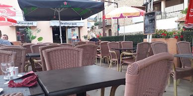 The local place you can see from our house. Open for lunch most days and drinks too 7 PM. Soak up the sun and grab lunch. Owner (Geoff) is a bit aloof but its France.